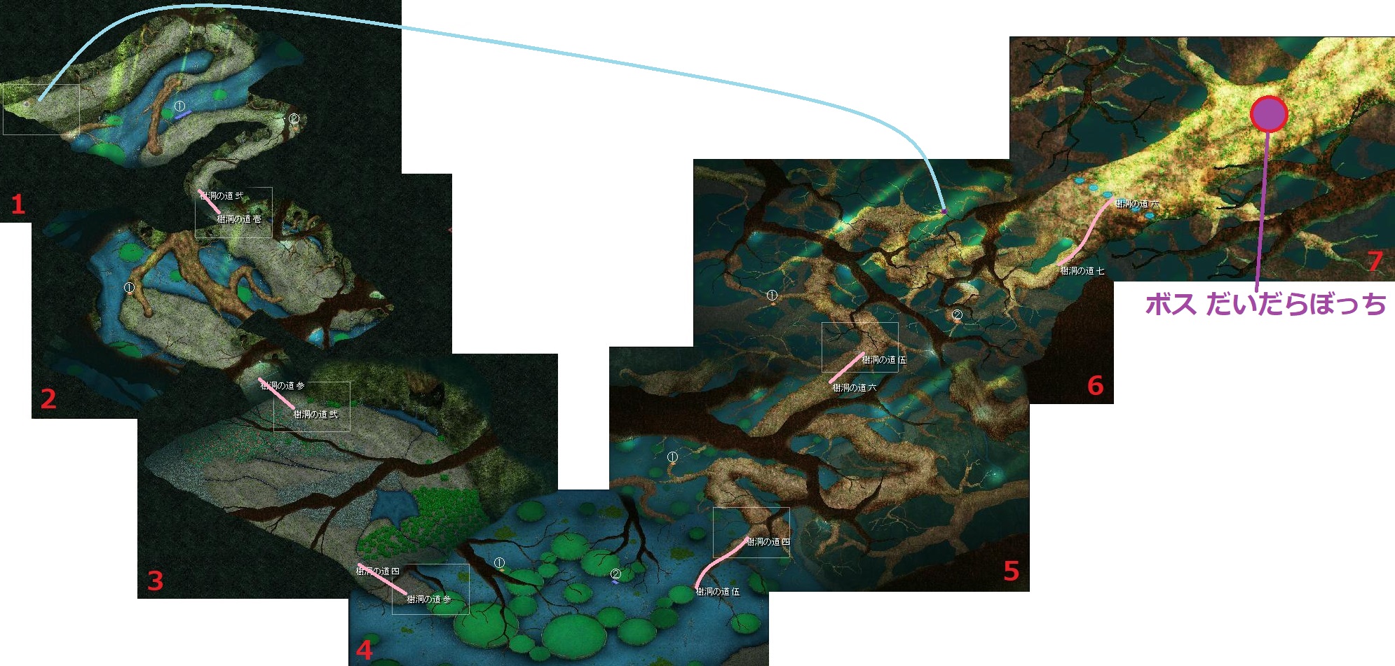 | 樹洞の道 伍 | x=7 ,y=76 | 霊珠 x100 | 試練 | |