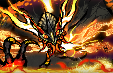 日本から遥か遠くの土地にて相対した魔神。 魔神が生み出す炎は数多の世界を焼き滅ぼす力を持つとされ、 彼の地には激しい天変地異の後、あやかしに近い存在である魔物が封印から解き放たれ、全てが滅び去るという「予言」が存在し、