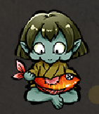 河童のような見た目のあやかし。 鋭い歯を持ち、水辺で魚を捕まえて食べるものとされている。 捕らえた魚を取られまいと、目のあったものをとにかく攻撃する。