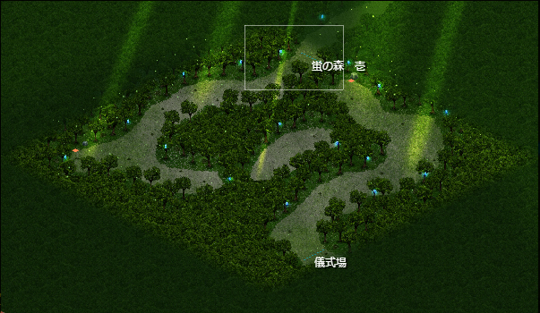 蛍の森 壱 x:55 y: 64 宝箱 霊珠50 試練「蛍の森 壱での探索」 --