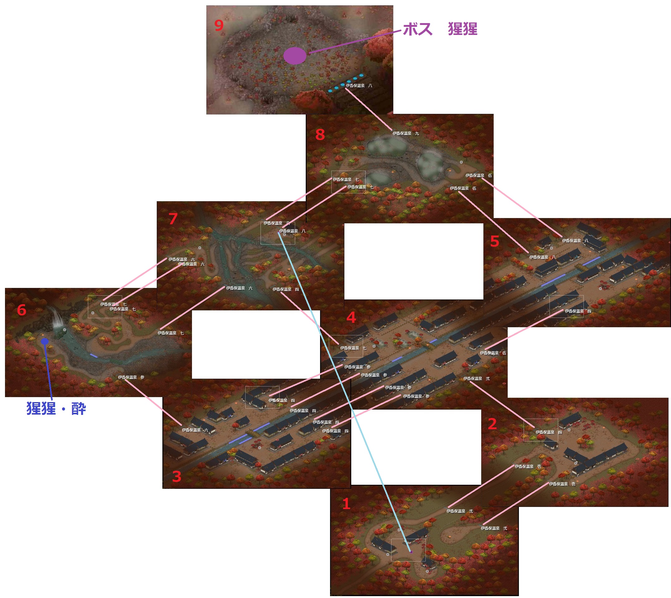 | 猩猩・酔の討伐 | 5000 | 10 | 20000 | 虹の紙片x1 | 伊香保温泉 六 | |