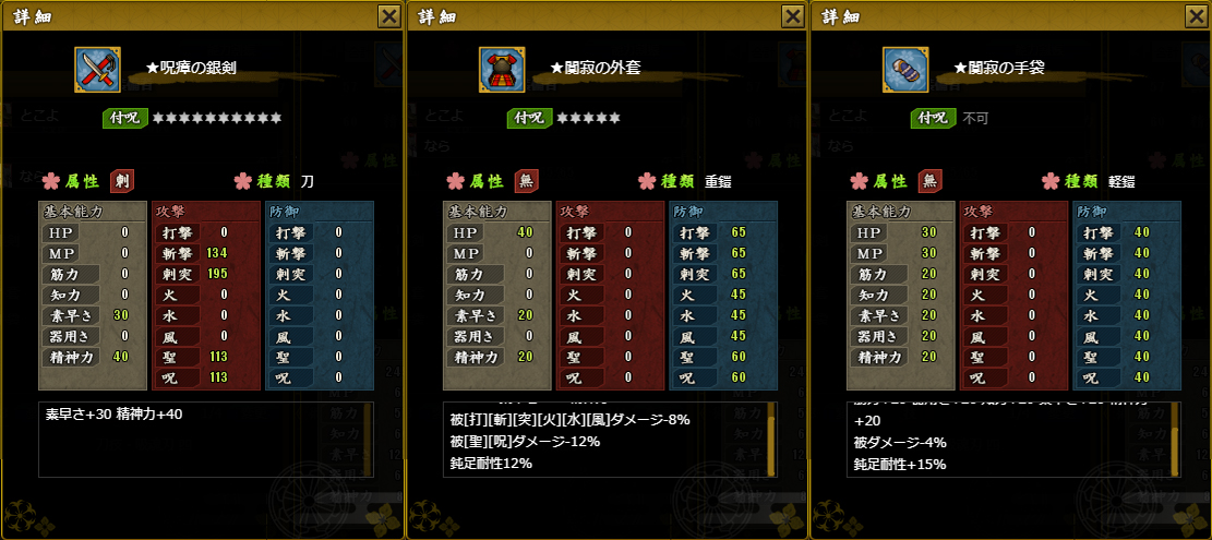 | 血砂の女神 | 3 | 320,000 | なし | 砂礫の勾玉(武器) | 風 | 打・聖 | 黒曜の構え 森羅結界 鋼体連鎖 | |