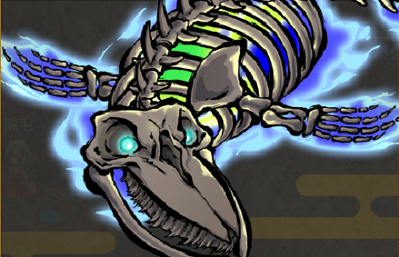 鯨の肉体が無くなり、骨だけの状態で蠢くあやかし。 霧のような水の攻撃を得意とし、対象に沈黙の状態異常をもたらす。 特に、耳鳴りのような異音を放った後の全体攻撃には注意が必要である。 斬撃と火・水・風属性に弱い特徴を持つ。