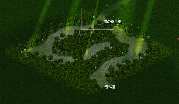 蛍の森 壱 x:55 y: 64 宝箱 霊珠50 試練「蛍の森 壱での探索」 --